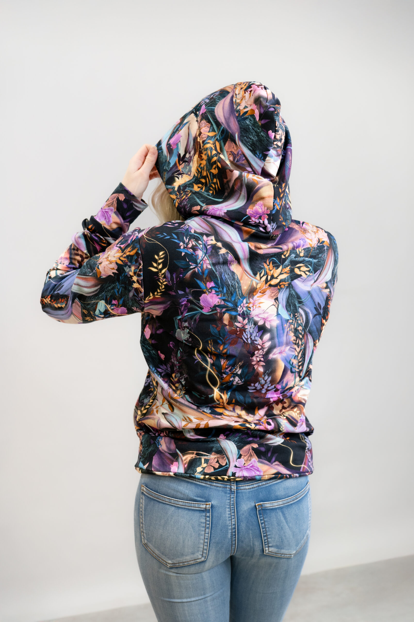 Hupparin istuvuutta on helppo muokata oman tyylin mukaan. Hihoissa on reilusti pituutta, ja resorit voi taittaa halutessaan kaksinkerroin. Myös helmaresorin voi kääntää hupparin alle, jos toivoo lyhyempää ilmettä.
