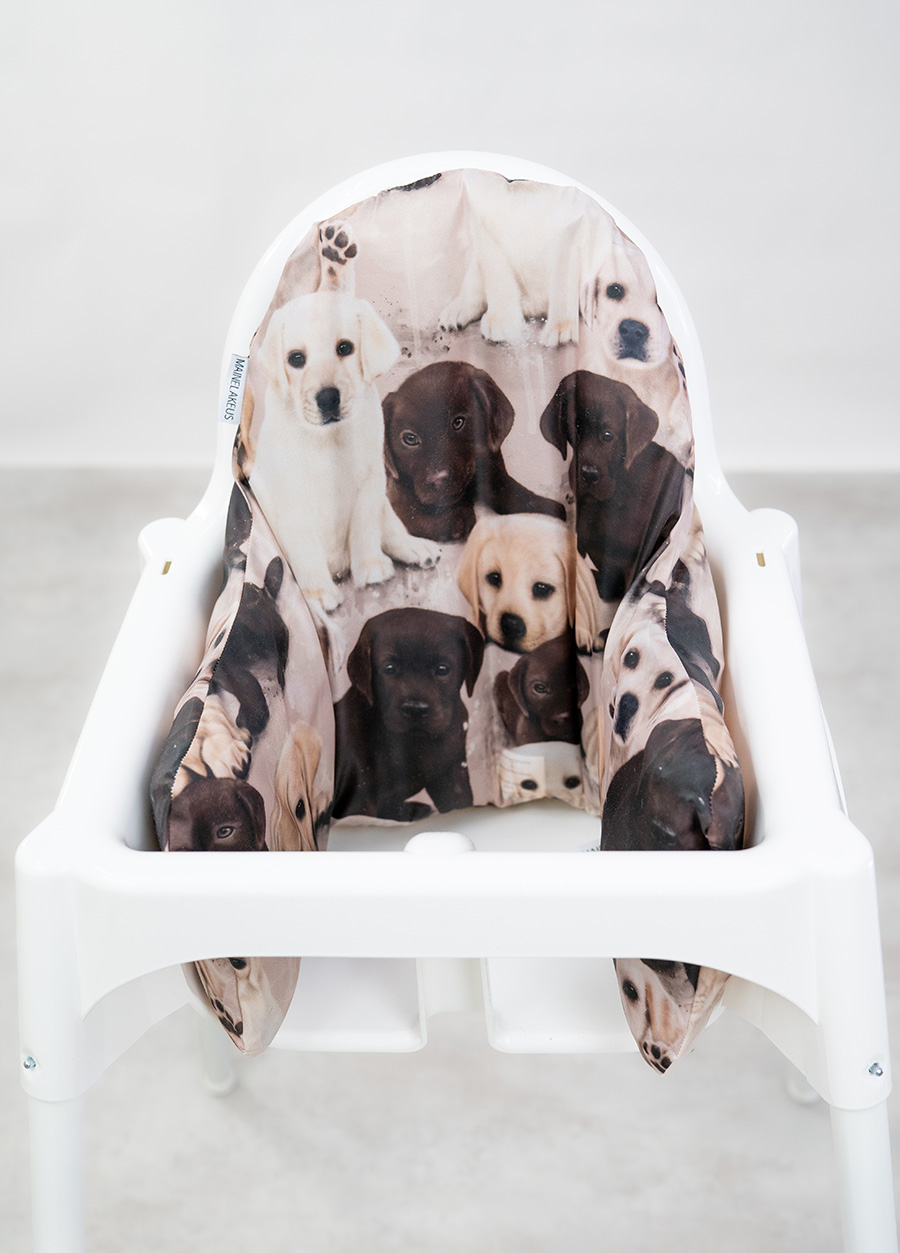 Kaunis ja käytännöllinen päällinen IKEAn Antilop -syöttötuoliin. Päällinen on valmistettu vedenpitävästä materiaalista, joten arjen roiskeet ja tahrat on helppo pyyhkiä puhtaaksi. Vetoketju tekee päällisen laittamisesta ja irrottamisesta nopeaa ja vaivatonta.