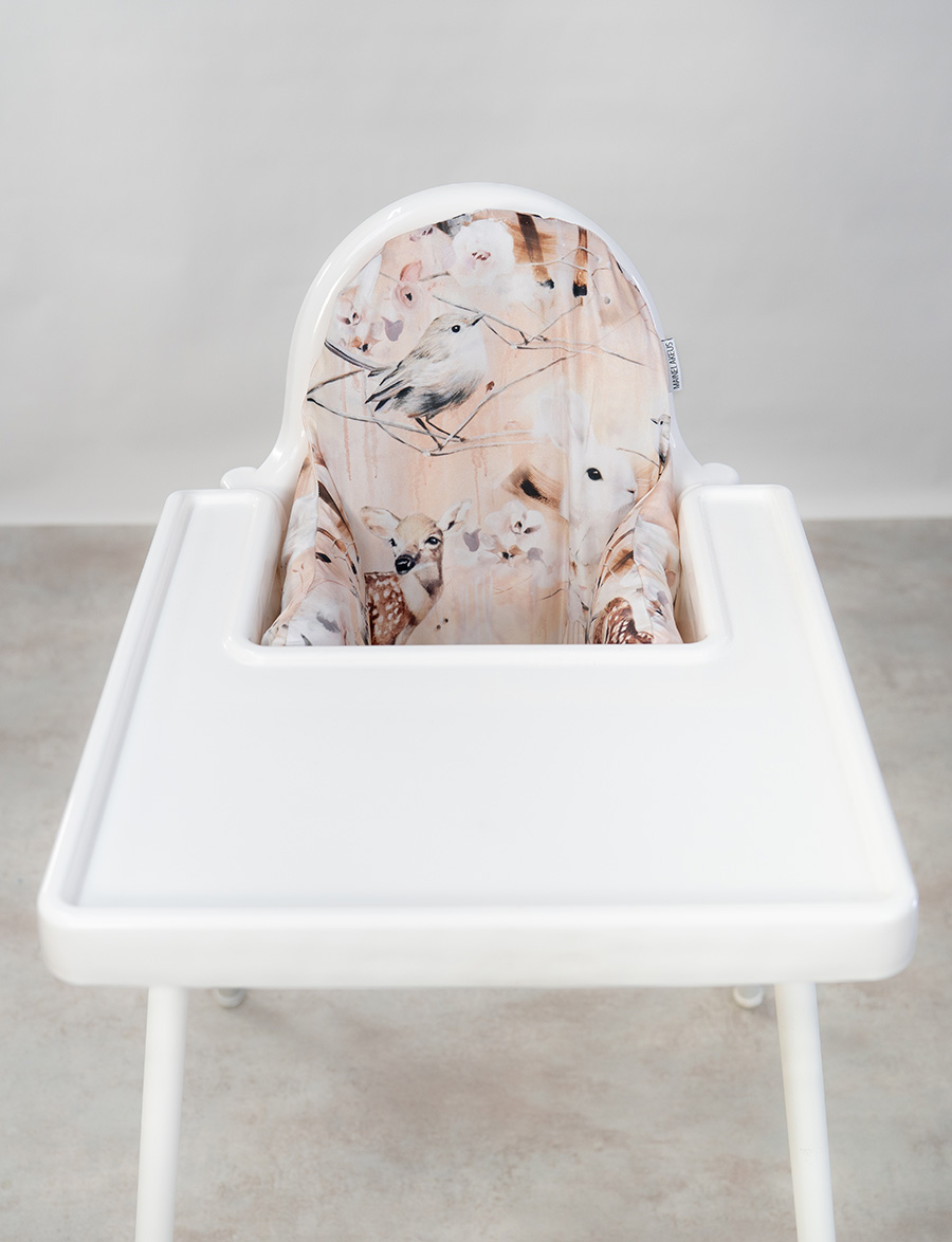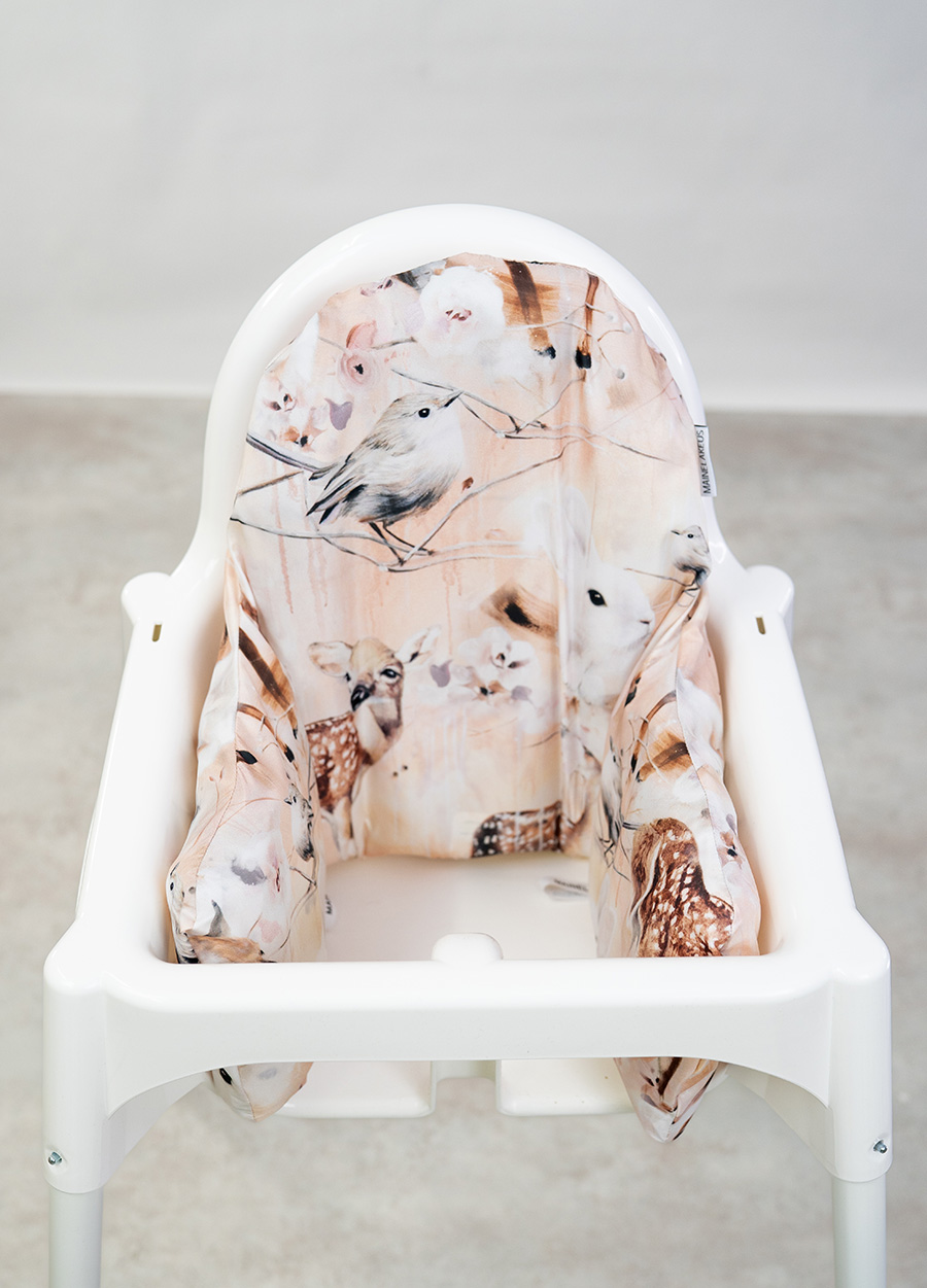 Kaunis ja käytännöllinen päällinen IKEAn Antilop -syöttötuoliin. Päällinen on valmistettu vedenpitävästä materiaalista, joten arjen roiskeet ja tahrat on helppo pyyhkiä puhtaaksi. Vetoketju tekee päällisen laittamisesta ja irrottamisesta nopeaa ja vaivatonta.