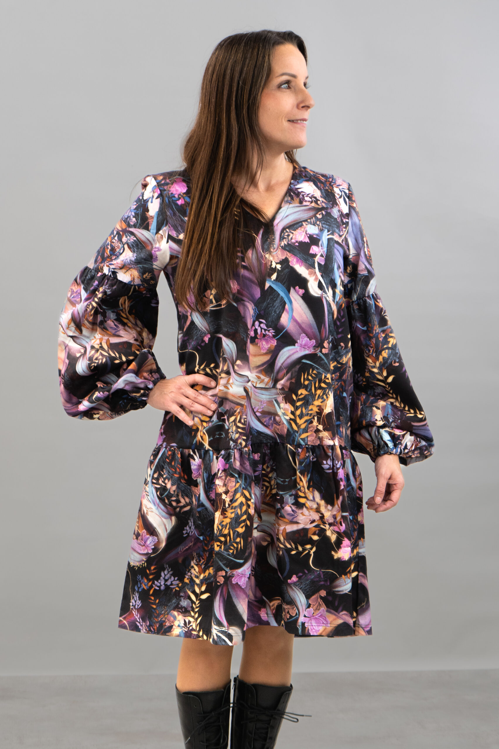 Puhvihihainen mekko, suunniteltu ja valmistettu Suomessa